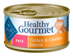 Blue Buffalo BLUE Healthy Gourmet Adult Turkey and Chicken Entree Canned Cat Food was created for the health and overall well-being of your precious cat. Made with top quality natural ingredients, Blue Buffalo BLUE Healthy Gourmet Adult Turkey and Chicken Entree Canned Cat Food features protein-rich deboned chicken with wholesome whole grains, garden veggies and fruit including cranberries to help support your kitty’s urinary tract health. You can feel good about feeding your feline friend because this food contains NO chicken or poultry by-product meals, artificial preservatives, corn, wheat or soy!