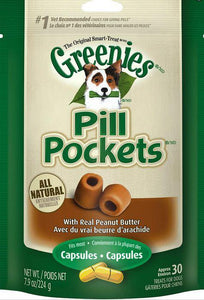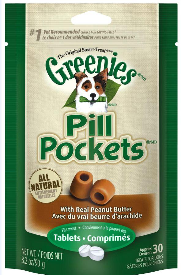 Giving your pup medication no longer has to be a hassle! Greenies Pill Pockets Canine Peanut Butter Dog Treats are the perfect, low calorie way to disguise pills and eliminate the stress of giving your furry companion medicine. Greenies Pill Pockets Canine Peanut Butter Dog Treats mask both the smell and taste of the pills put inside!