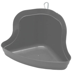 Extra high, flip-resistant litter pan that fits in the corner or cages.