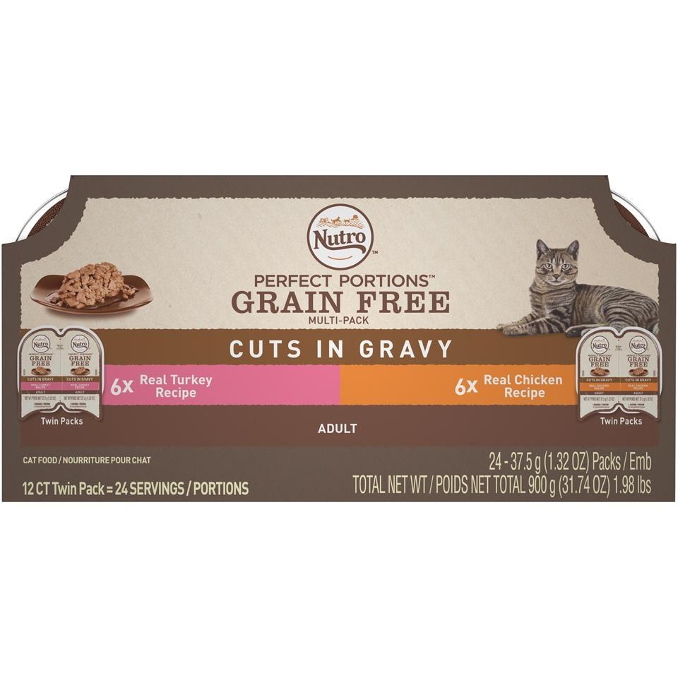 Nutro Perfect Portions Grain Free Chicken and Turkey Cuts in Gravy Wet Cat Food Tray Variety Pack