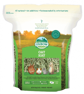 Oxbow’s hearty, hand-selected Oat Hay is a favorite of many rabbits, guinea pigs, and chinchillas. Our Oat Hay is harvested before the oat develops into a seed, providing savory husks full of flavor and fiber. Its aroma will stimulate your pet’s appetite and encourage him eat more hay. Your pet should have unlimited grass hay every day.
