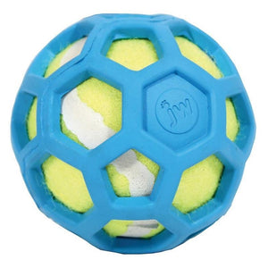 An ingenious, patented honeycomb, web design plus natural, tough rubber with a tennis ball tucked inside.