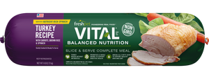 Made with fresh 100% natural, antibiotic free turkey, vitamin-rich peas and carrots, high-fiber brown rice and Omega-3 and 6 fatty acids. This recipe is not only delicious, but gives your dog the optimal nutrition they need for healthy digestion and a shiny coat. Verified Non GMO.