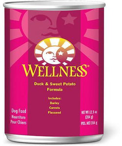 Wellness Complete Health Natural Duck and Sweet Potato Recipe Wet Canned Dog Food is formulated with high quality chunks of Duck in a gravy that dogs love. This hearty recipe is made with only wholesome, healthy, and natural ingredients. This recipe can be fed on a daily basis or could even be used as a delicious and nutritious way to top your dogs kibble - making it even more appetizing! This Wellness recipe is fortified with vitamins, minerals and antioxidants to keep your dog in their optimal shape and in great health!