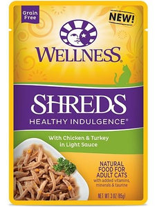 Wellness Healthy Indulgence Natural Grain Free Shreds with Chicken and Turkey in Light Sauce Cat Food Pouch