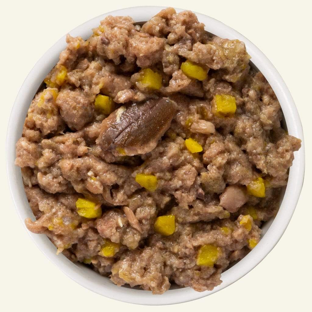 Water Sufficient For Processing, Beef, Mackerel, Pumpkin, Salmon, Beef Lung, Beef Kidney, Locust Bean Gum, Sunflower Seed Oil, Xanthan Gum, Guar Gum, Potassium Chloride, Choline Chloride, Zinc Sulfate, Vitamin E Supplement, Calcium Pantothenate, Vitamin A Supplement, Copper Sulfate, Thiamine Mononitrate (Vitamin B1), Nicotinic Acid (Vitamin B3), Manganese Sulfate, Riboflavin Supplement (Vitamin B2), Pyridoxine Hydrochloride (Vitamin B6), Folic Acid, Vitamin D3 Supplement, Potassium Iodide, Sodium Selenite, Vitamin B12 Supplement